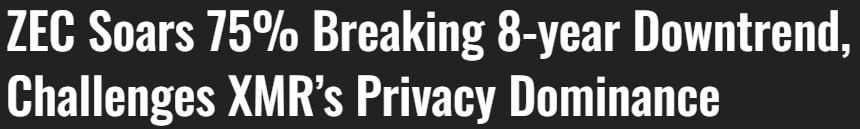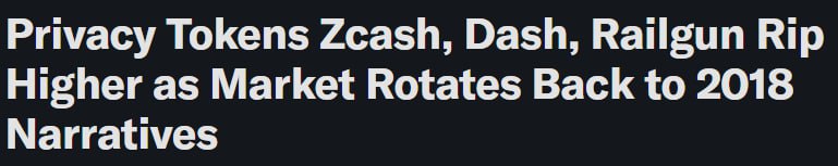 The Monero Competitor ZCash ($ZEC) is now leading the privacy meta within altcoins, passing XMR, Dash, Railgun, and Aztec.